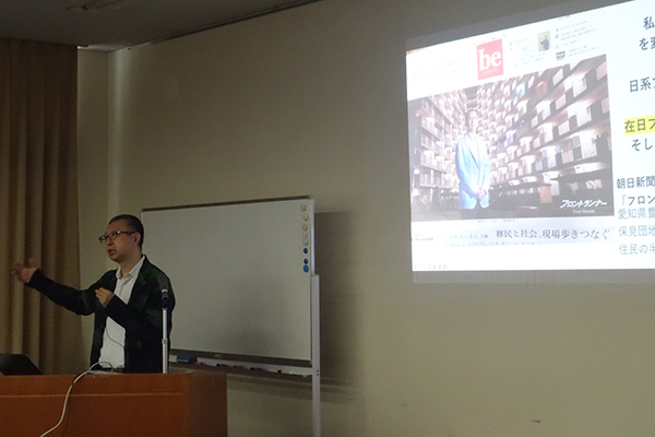 午前の基調講演では、日伯関係の専門家である武蔵大学社会学部教授、アンジェロ・イシ氏が「共生社会の実現には何が必要か ~在日外国人が直面する言葉・心・法の壁~」と題して講演しました。イシ氏は、日系ブラジル人の素顔や本音、日本での外国人住民が抱える「法律の壁」や「心の壁」などを取り上げ、多文化共生社会への発想の転換についてお話いただきました。