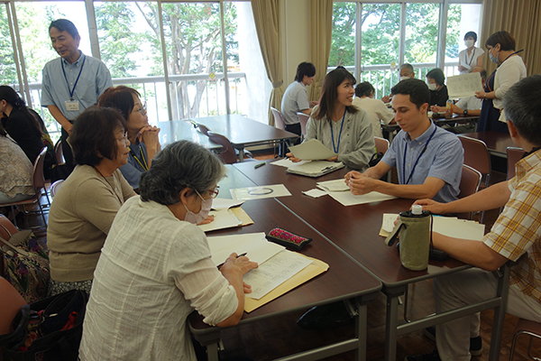 第3分科会では、地域日本語教育推進員2名がファシリテーターを務め、「やさしい日本語」の誕生背景やその必要性について説明しました。その後、参加者はグループに分かれ、具体的な言い換え方法について一緒に考えるワークショップを実施しました。