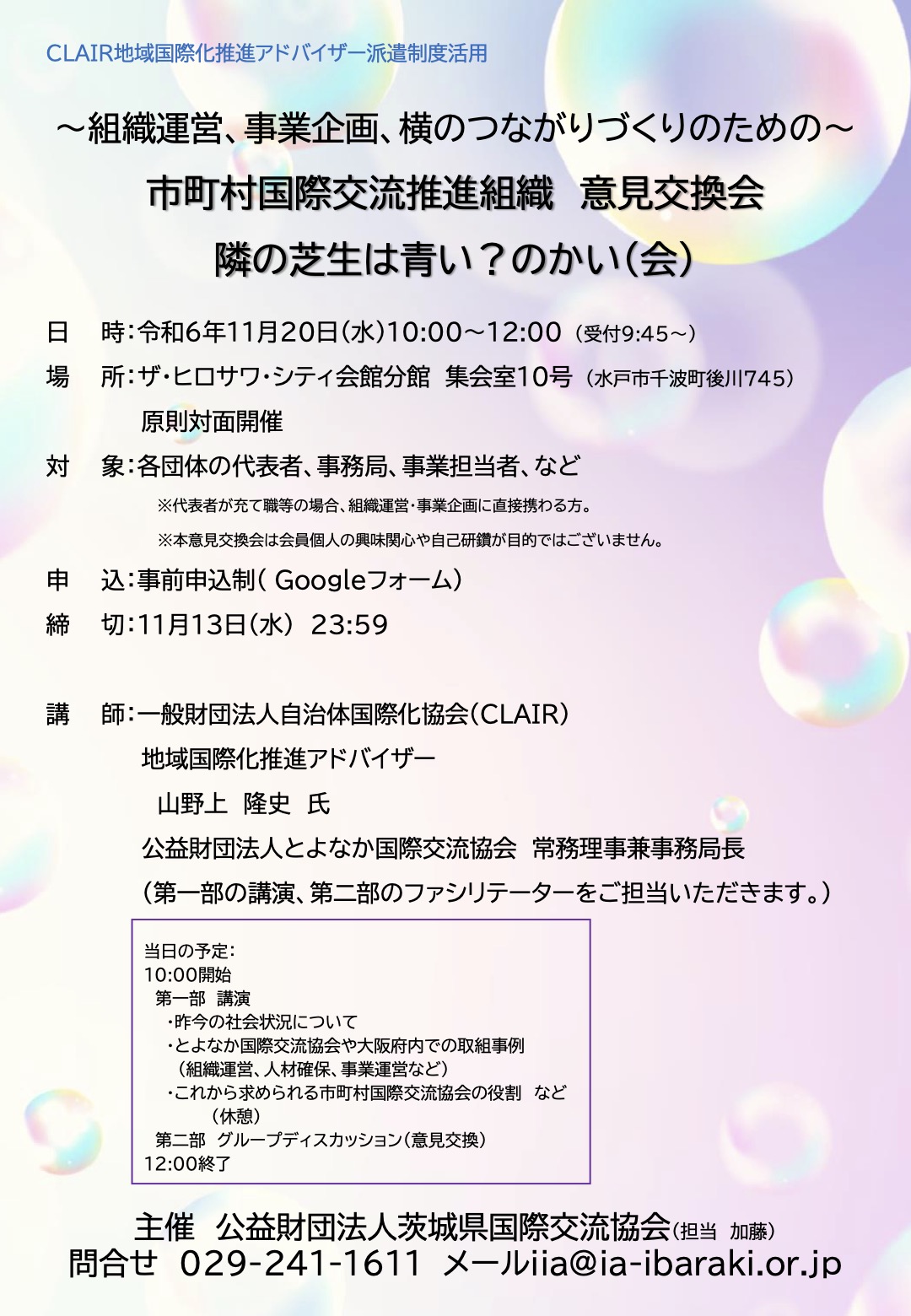 ~組織運営、事業企画、横のつながりづくりのための~ 市町村国際交流推進組織 意見交換会