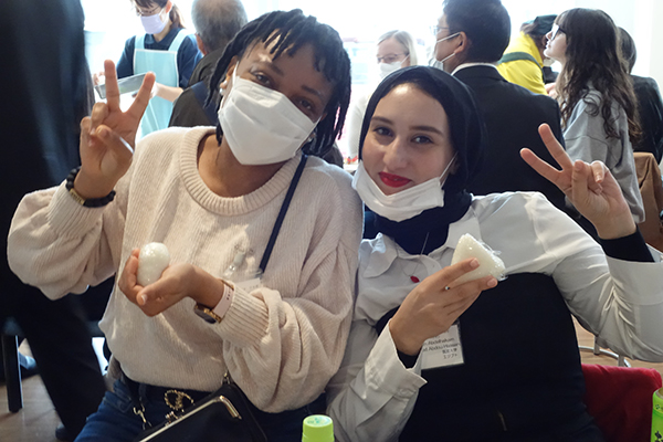 河内町では、町特産品を使い健康かつ美味しい料理を考案・普及するボランティア団体「キッチン菜の花会」の皆さんと、楽しく交流しました。町長ほか町の幹部の方も同席してくださいました。生産者が愛情を込めて育てた河内米の新米でおにぎり作りに挑戦しました。また、町民の思いが詰まった手作りの郷土料理も堪能しました。参加した留学生からは、「交流会がとても楽しく、素敵な思い出になりました。機会があればまた訪れたいです」「料理がとてもおいしくて、おかわりまでしてしまいました。河内町の皆さんが本当に優しく、感謝の気持ちでいっぱいです」といった感想が寄せられました。