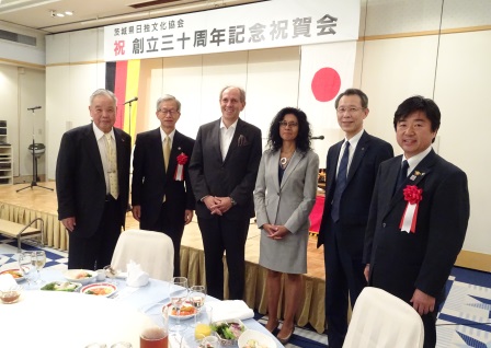 茨城日独文化協会は、1987年6月18日設立総会を開き、26番目の日独協会として正式発足した。当協会の設立は、大子在住の陶芸家ゲルト・クナッパー氏と陶芸家で現協会会長の井上壽博氏の出会いが端緒であった。 1984年10月18日、県庁において、茨城日独会設立委員会が発足し、知事を名誉会長に決定した。1986年8月4日には、設立委員会を設立準備委員会に改称し、本会は日独文化協会として発足すべく準備を進める。1986年11月~12月にかけて、会員の入会準備、会則、役員予定者の審議をする。1987年5月20日には、井上(専務理事)、川又(常務理事)、市川(専務局長)の3人が、ドイツ連邦共和国大使館を訪問し、茨城日独文化協会の設立について報告ほ旁々今後の協力を要請し快諾を得た。 2000年茨城県日独文化協会に改称 |