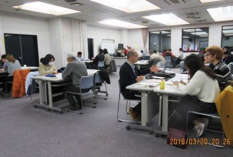 | 団体からのメッセージ | 日本語教室は数人単位のグループ制で、週3回です。火曜日午後7時からの日本語教室の様子です。8時から10分間のお茶の時間には日本の行事(お正月のおしるこ、桜茶、七夕等)紹介と出身国のお正月などの紹介をお互いに交流を図っています。 |