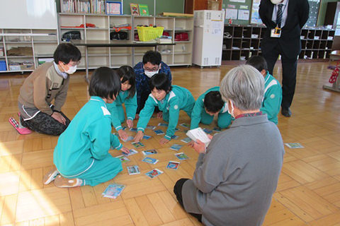 書き損じはがきキャンペーンにて、北茨城市立明徳小学校より寄付の模様が茨城新聞に掲載された時の新聞紙面とその時の様子 |